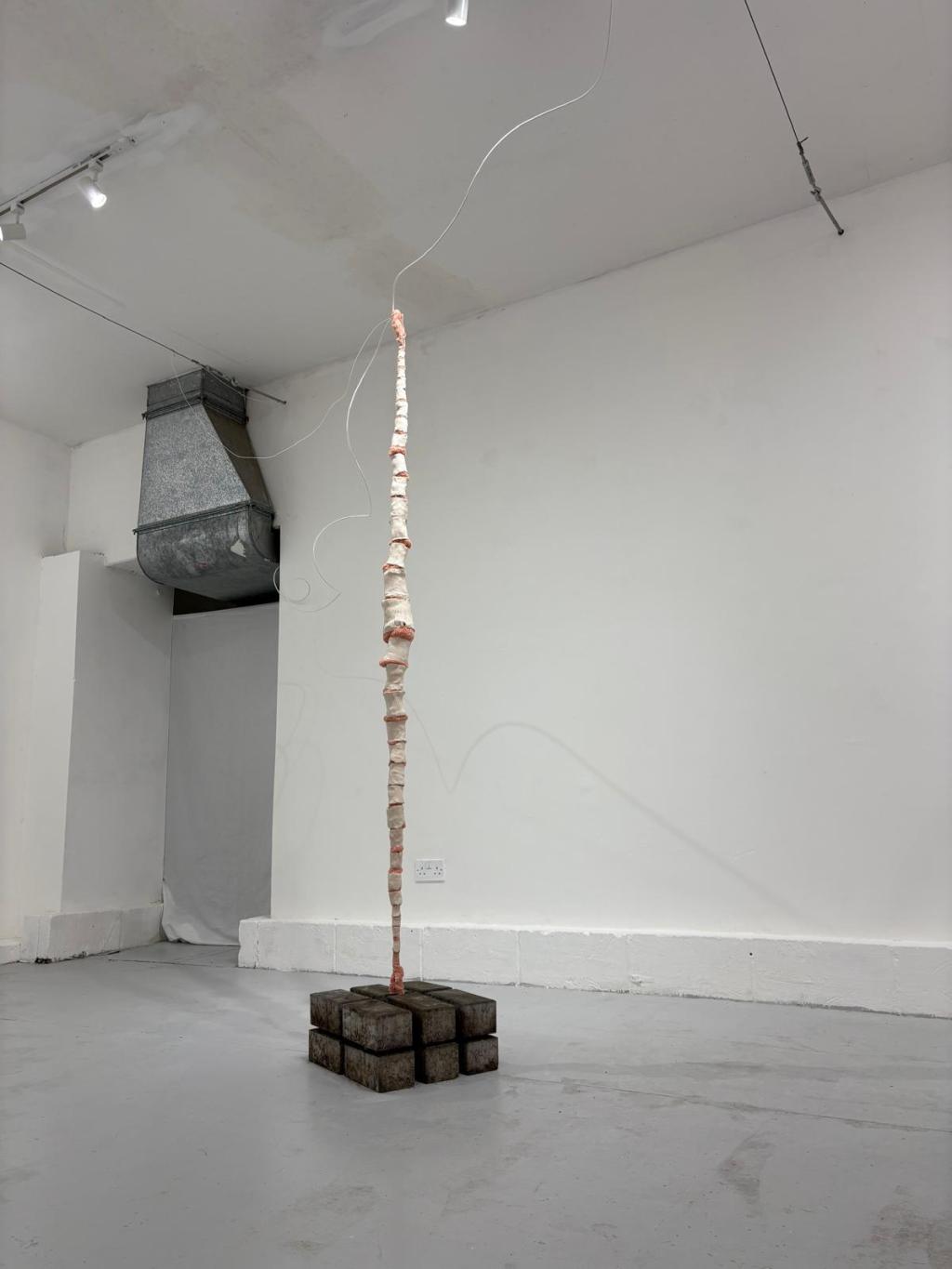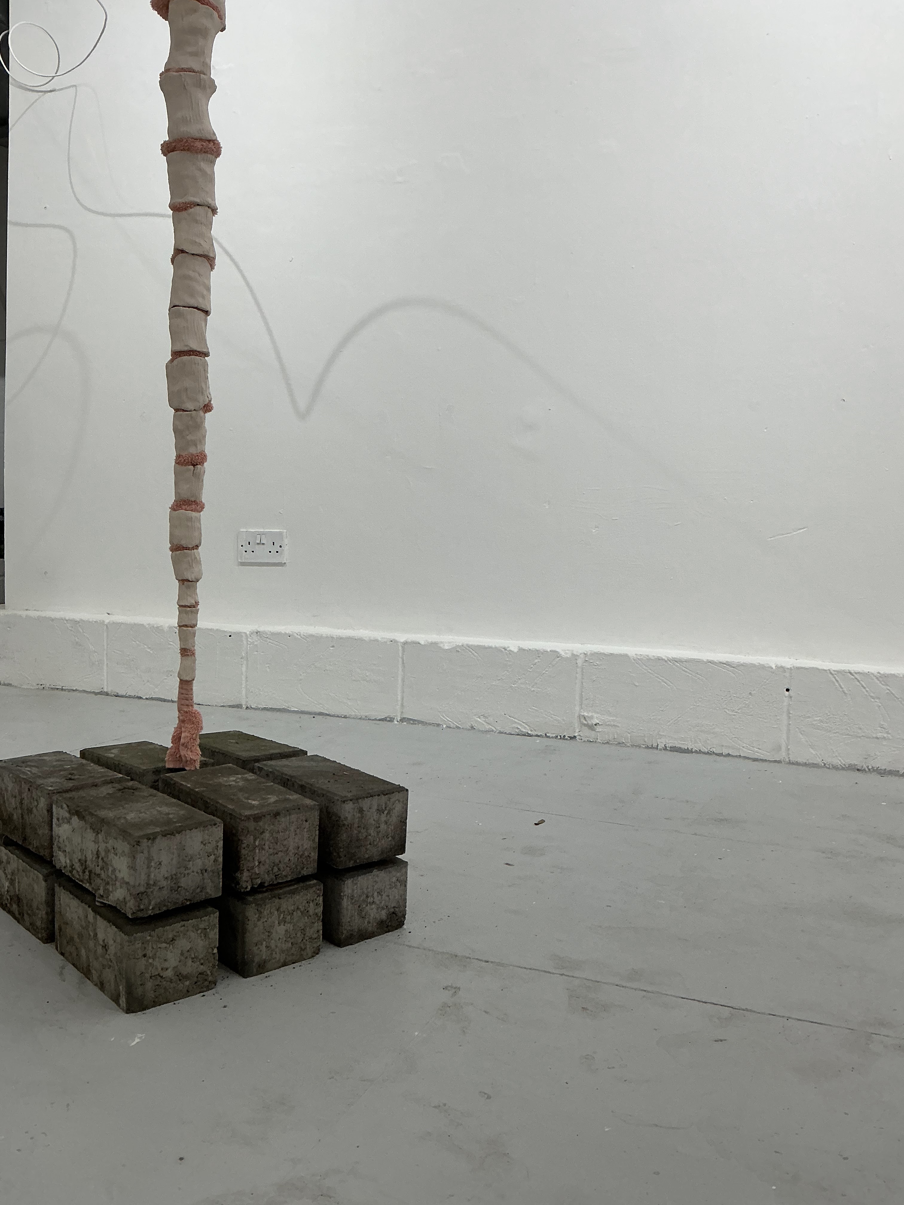Unglazed ceramic, towel, breeze blocks, wires, substructure.